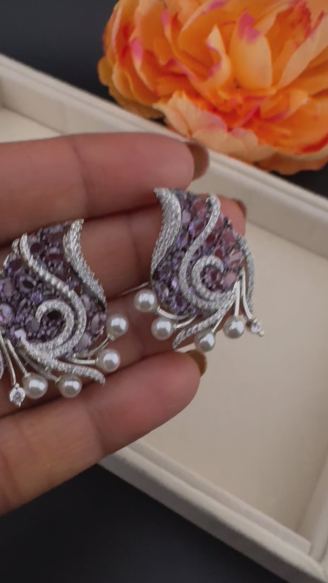 Premium Nano Setting Cubic Zirconia, Crystal stones in Unique setting is designer Inspired Statement Silver colored Stud earrings