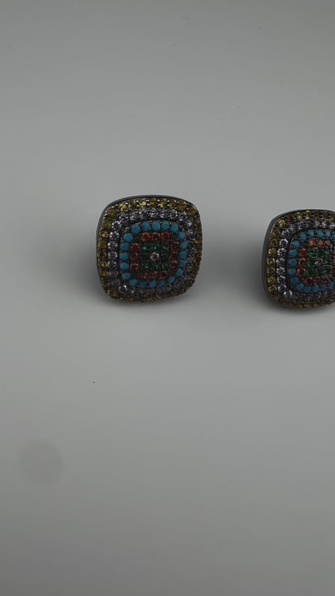 Premium Nano Setting Cubic Zirconia is Victorian designer Inspired Statement Square Stud earring