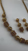 This is a gorgeous matt gold plated Indian Premium quality with Traditional design throughout the necklace set with matching earrings looks amazing. This goes well with Indian as well as western dresses. This is so beautiful to look at and a perfect one for Bridal wear and party wear.