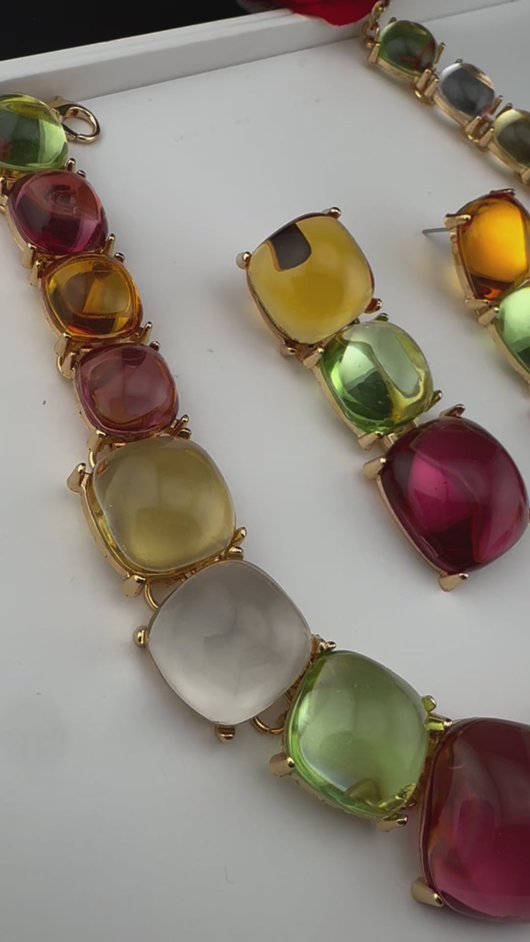 Premium Quality Modern Chunky Necklace with long chunky earrings/Contemporary Necklace set/Party/everyday wear/Indian Jewelry/Multicolor set